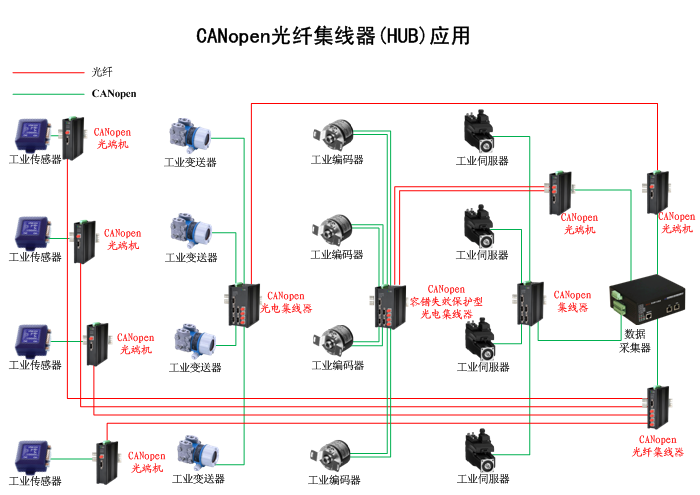 1/2/4/8/16進2/4/8/16/32出CANopen光纖集線器(HUB),獨立/冗余供電,壁掛/機架,防水型 |
