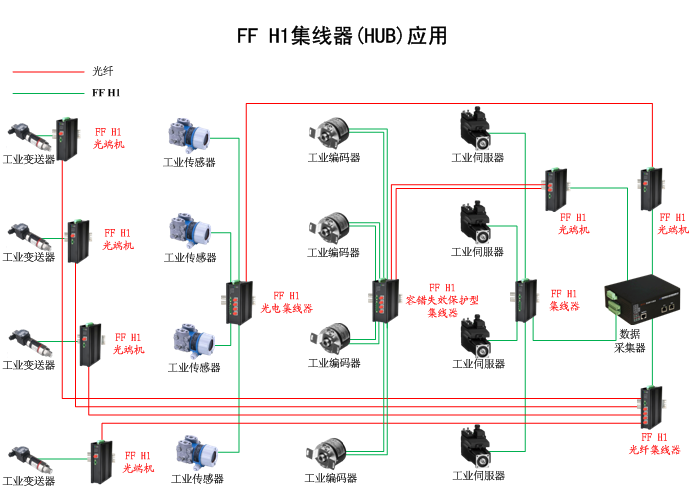 FF H1集線器(HUB)已經廣泛應用在石油化工、礦山開采及冶煉廠礦企業、高鐵及地鐵軌道交通、橋梁隧道、城市管理公交BRT及公用設施、海島港灣碼頭、大壩及河道水利、燃煤氣自來水及污水處理、能源發電和輸配變電網、環境監測和保護、物聯網及大數據機房控制中心、食品加工、工業自動化自動控制及數據采集、機器人及視覺控制、傳感及執行器運動控制、醫學影像、船舶運輸、物探及地震海洋勘探、海上及水下作業及鉆探井平臺的PLC/DCS等自動控制及數據采集系統中。