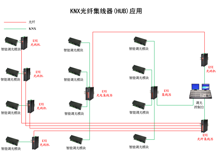 KNX光纖集線器(HUB)通用型封裝具有更高的性價比,滿足大多數應用場合,性能質量穩定。