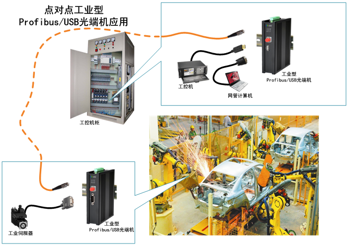 Profibus/USB光端機接收機,1路USB1.1/2.0主口,4路Profibus,單模/多模/塑料,1/2/4路光口,ST/FC/SC光接口,15/20/25/32dB,USB供電,模塊式,通用型,非網管 |