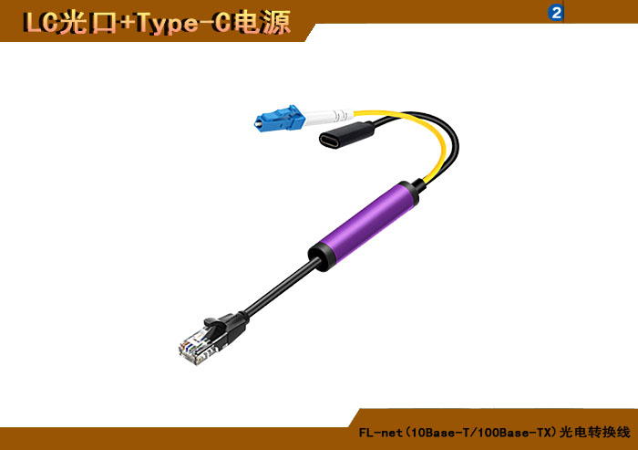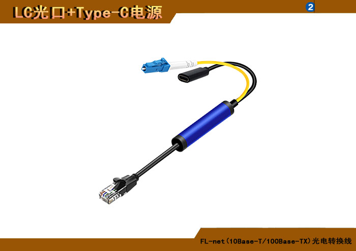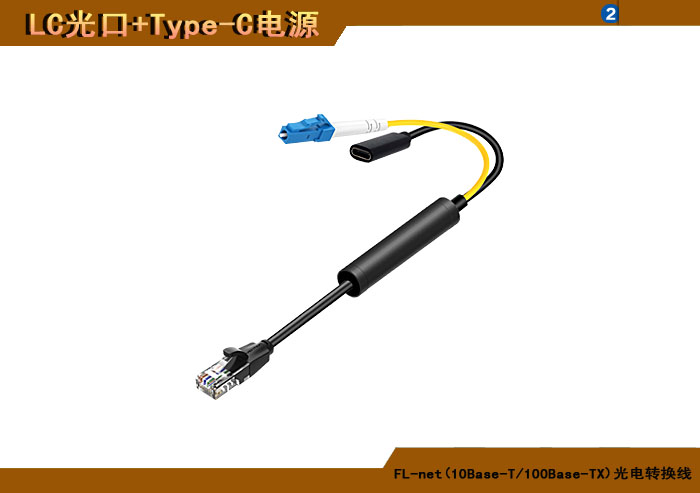 FL-net(10Base-T/100Base-TX)光電轉換線 LC光纖接口+Type-C電源接口 |