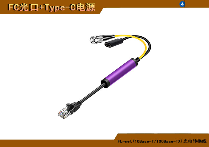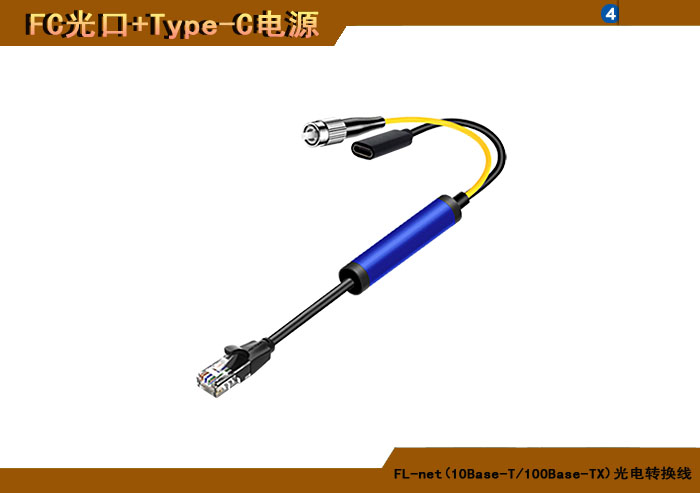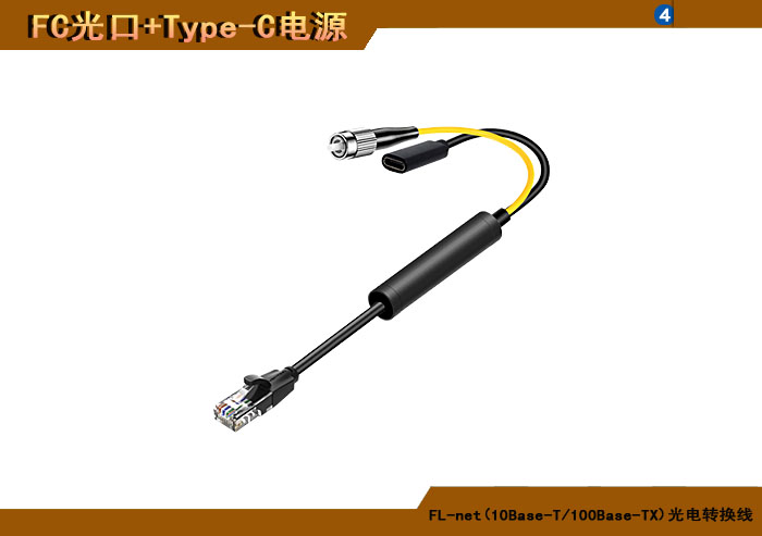 FL-net(10Base-T/100Base-TX)光電轉換線 FC光纖接口+Type-C電源接口 |