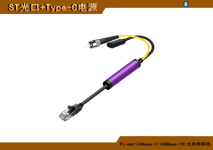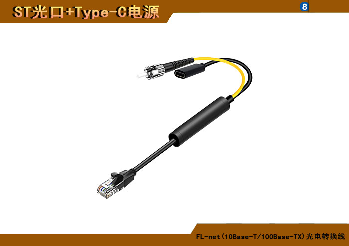 FL-net(10Base-T/100Base-TX)光電轉換線 ST光纖接口+Type-C電源接口 |