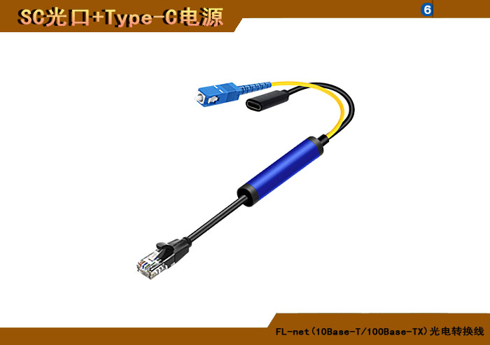 FL-net(10Base-T/100Base-TX)光電轉換線 SC光纖接口+Type-C電源接口 |