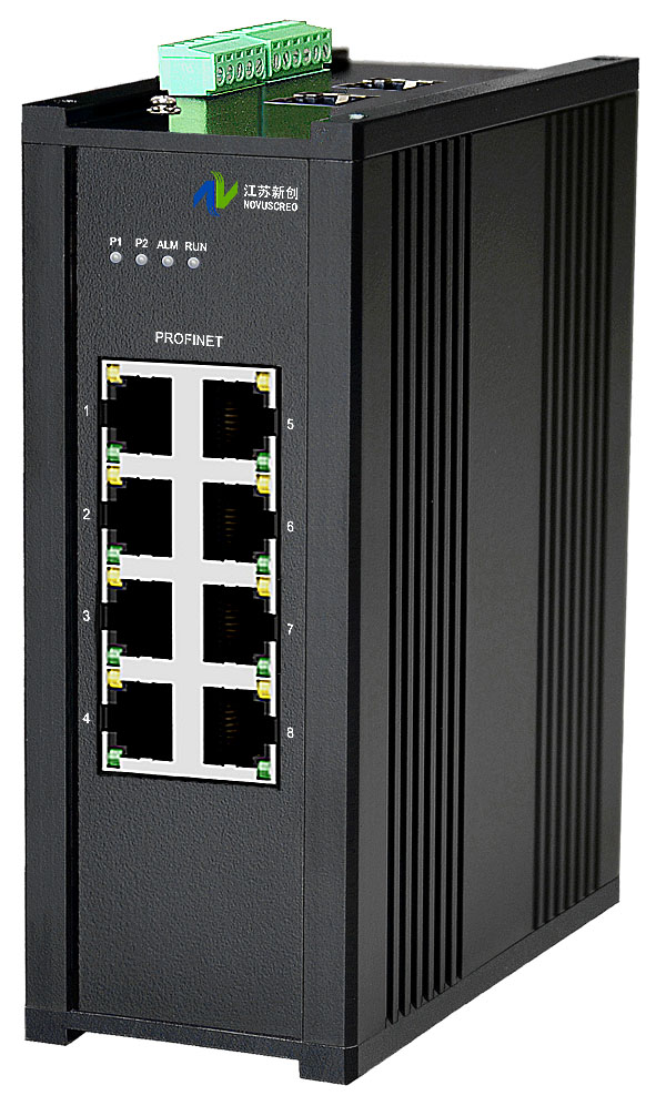 PROFINET電口交換機采用江蘇新創先進FastRing 處理技術及的快速生成樹和多成樹協議,因此能夠支持各種建總線級聯鏈形、星型分叉形、環網及多環相切形、T形、網格型等各種復雜的高可靠冗余網絡,30ms的保護恢復時間使得交換機尤其適合在高可靠的工業自動化及實時快速網絡通信中。