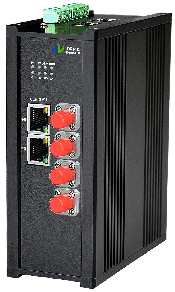 SERCOS Ⅲ環網型光纖保護集線器(HUB) 是江蘇新創自主研發創新,專門為工業自動化控制系統、PLC/DCS系統、信號測量及數據采集系統的現場各種IO設備、儀器儀表、電壓、電流、電量、溫度、壓力、流量、液位、電位、位置、煙霧、化學元素檢測等等各種傳感器、編碼器、計數器、變頻器、伺服器、執行器輸出的SERCOS Ⅲ信號通過光纖環網連接成總線網絡,每個遠端SERCOS Ⅲ從站通過光纖接入中心集線器,集線器內置光纖旁路保護功能,當從站兩路光口、光纖同時故障或節點斷電時,可以自動將故障節點從光纖環網切除或旁路,以便非故障節點仍然構成一個完整的光纖環網鏈路。透明符合和兼容IEC 61158/61784/61800-7(SERCOS Ⅲ)總線標準,透明支持任意SERCOS Ⅲ上層協議,支持最大100Mbps的總線工作速率。內置電纜自動均衡器和時鐘重定時功能,因此大大降低及保證了輸出波形失真和數字信號抖動的要求,提高了輸入輸出信號質量,單段電纜總線長度可達100米,最大從站數220個。支持輸入、輸出及電源三端隔離,采用先進的高速數字隔離技術,其傳輸速度和熱穩定性遠高于普通的光電隔離器;內置15KV靜電保護器,可有效防止設備之間由于地不平衡引起的串口損壞及靜電擊穿。內置的高性能的兩級粗細抗雷擊保護裝置,支持共模和差模兩種保護模式。高達10KA通流量的第一級粗保護電路能夠有效的降低和抑制雷電、浪涌大信號沖擊;第二級精細保護電路能夠有效去除小信號殘留電壓沖擊及干擾信號。所有保護電路都采用高可靠、低殘壓、低寄生電容及快速響應保護時間的防雷器件。