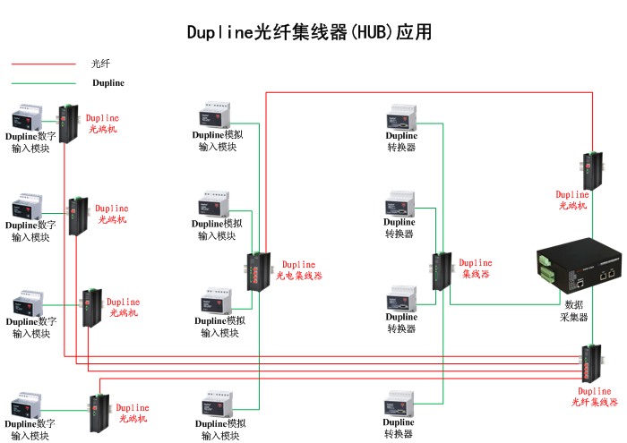 1進16出Dupline光纖集線器(HUB),獨立/冗余供電,機架,通用型 |