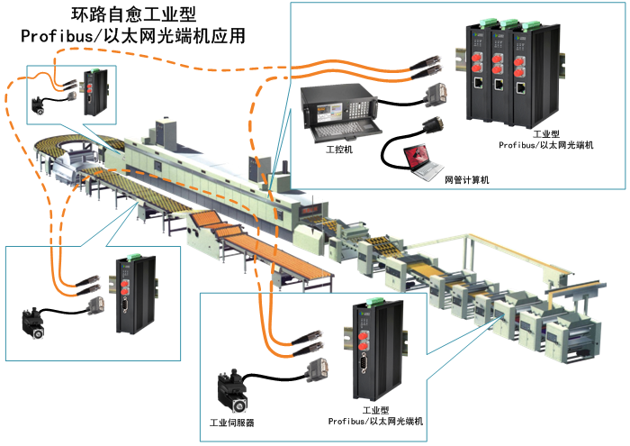 Profibus/以太網環路自愈型光端機接收機,ProfibusDP/FMS/PA可選1路10/100M以太網,1 路Profibus,單模/多模/塑料,2路光口,ST/FC/SC/LC/SFP光接口,15/20/25/32dB,USB獨立/冗余/總線供電(DC18~36V/5V),導軌,工業型,非網管/網管/帶光纖數字診斷網管 |