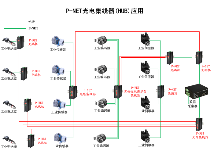 P-NET光電集線器(HUB)通用型封裝具有更高的性價比,滿足大多數應用場合,性能質量穩定。